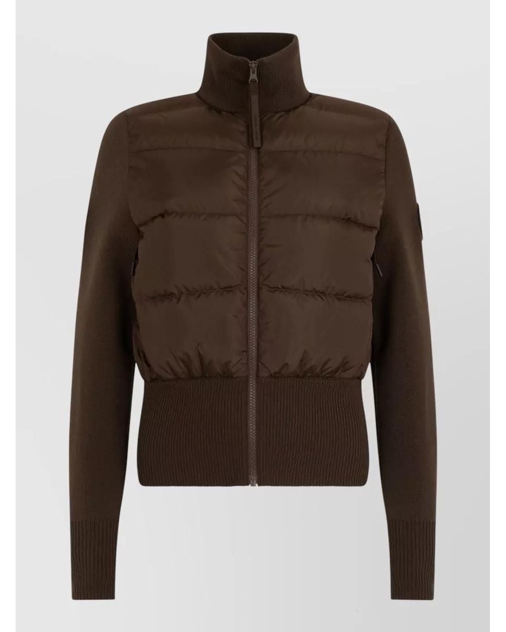 Women's Brown Padded Jacket Knit Sleeves High Collar
