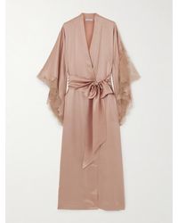 Carine Gilson Women's Natural Belted Lace-Trimmed Silk-Satin Robe