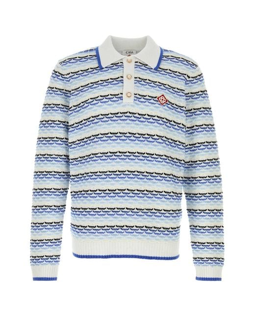 Textured Cotton Knit Polo Shirt With Contrasting Accents - Blue