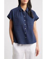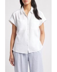 Caslon Women's White Embroidered Cotton Button-Up Shirt