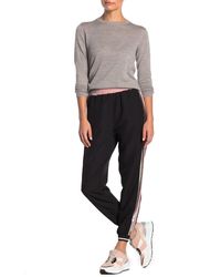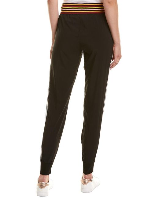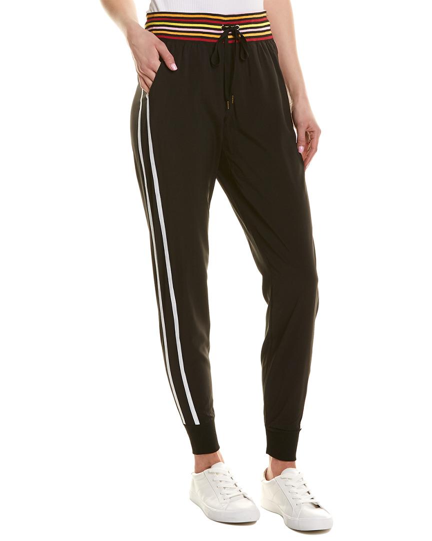 Color/pattern: jet black. Inseam approximately 30in. Measurement was taken from a size small and may vary slightly by size. Design details: elasticized drawstring waist, two front pockets, ribbed trim. Body: 90% polyester, 10% spandex. Trim: 95% polyester, 5% spandex. Machine wash.