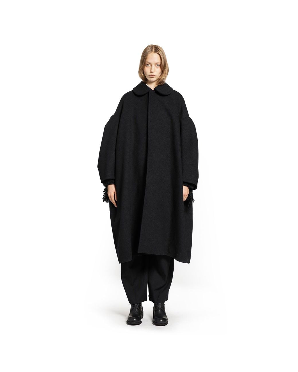 Women's Black Puffed Sleeve Oversized Coat