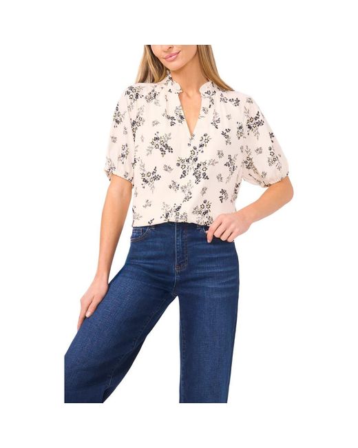 Women's Blue Floral Ruffle V-Neck Georgette Top