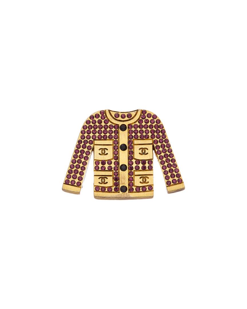 This is an authentic, pre-owned piece. This item is in good condition and shows signs of wear. This item shows wear on back hardware. For more information on condition, please see our condition guide at the bottom. Brass hardware. Purple crystals. Measures approximately 1.1in long x 1.5in high. Please note: All measurements were taken by hand and are approximate; slight variations may occur. Accompanied by branded box. Pin closure. The Vintage Condition Guide. Our products are 100% genuine. In some cases we purchase merchandise from trusted independent suppliers and not directly from the brand owner. In all cases we stand by the authenticity of every product sold on our site.