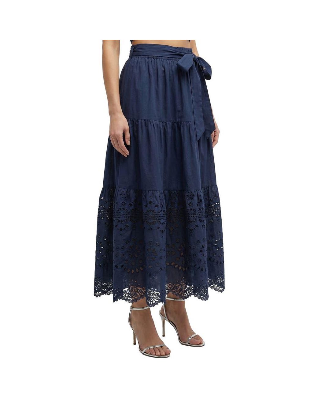 Women's Blue Jenni Tiered Belted Eyelet Smock Waist Skirt