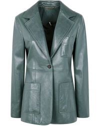 Go to ItalistSingle-breasted lambskin blazer with front horn button closure, mirror lapels, breast pocket, patch pockets, long sleeves, back split, viscose and cotton blend lining. Colour: Brown Composition: 100% lamb leather (Ovis aries) Country Of