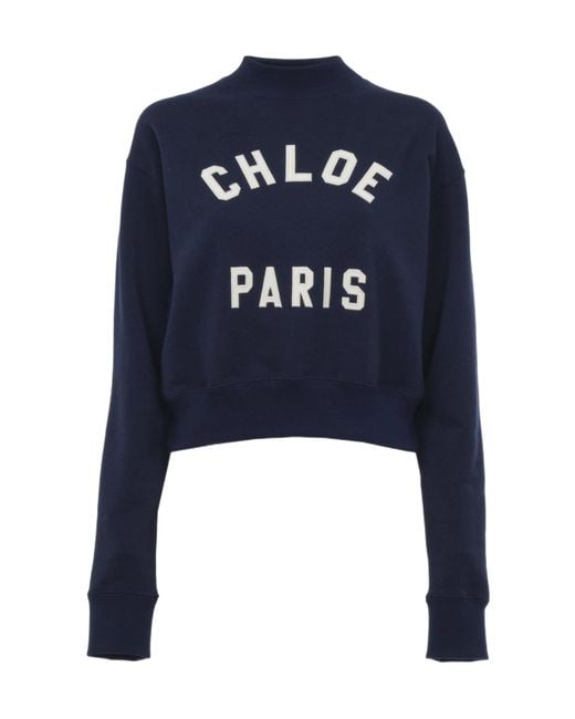 Women's Blue Chloé Logo Printed Mock-Neck Sweatshirt