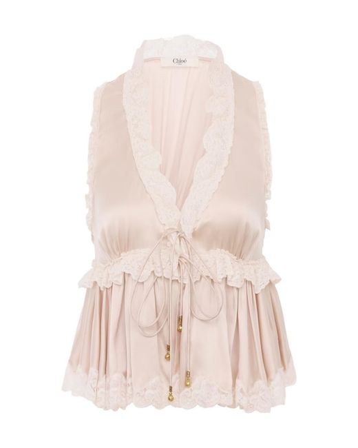 - Chloé Lace Detailed Ruffled Sleeveless Top