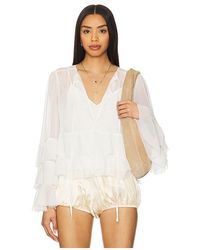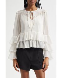 Go to GiltAbout the brand: Modern, feminine apparel that links sophistication and ease. Steffina Top in ivory with tiered ruffle details Approximately 20.9in from shoulder to hem Model is 5'12 and is wearing a size