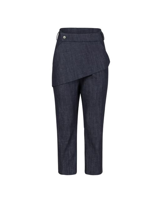 Elevate your denim collection with this avant-garde take on classic jeans. Crafted in a bold harem-style silhouette, they feature a fun front flap detail that redefines traditional tailoring. Perfectly versatile, these jeans transition seamlessly between formal and casual looks depending on your needs. FEATURES: Mid-rise harem jeans with functional pockets and a front flap that can button at the front or back. 100% Handmade. MATERIALS & CARE: Content: 98% Cotton, 2% ElastaneCare: Machine wash on cold (30ºC) with a mild detergent. Color: blue