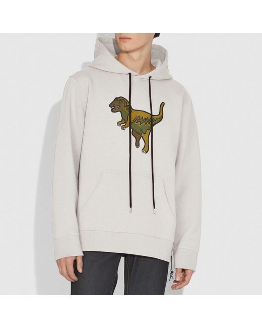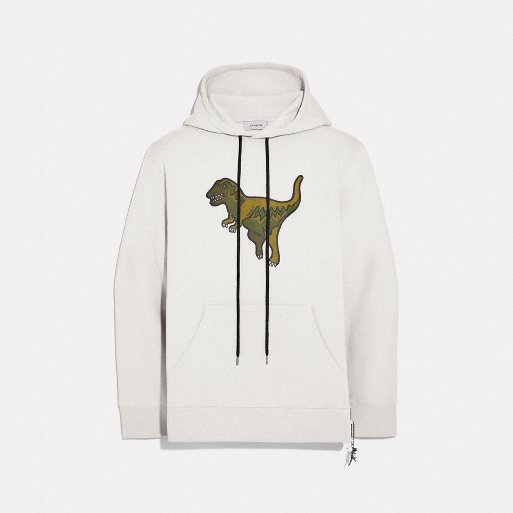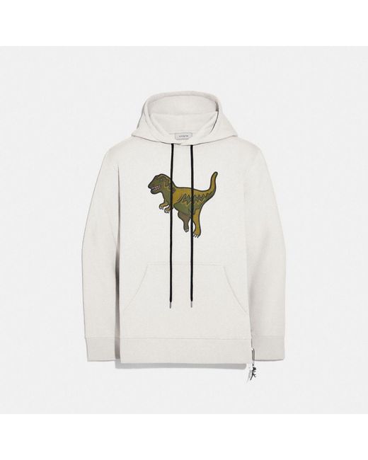 Rexy the Coach dino is front and center on this relaxed-fit hoodie. Designed with a kangaroo pocket, the sporty silhouette is crafted in a soft cotton-blend and finished with a Rexy charm. 60% cotton, 40% polyester Kangaroo pocket Length: 27 1/2" Model is 6'2" (188cm) and wears a size M. Color: white