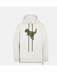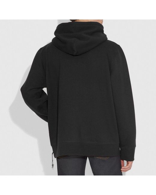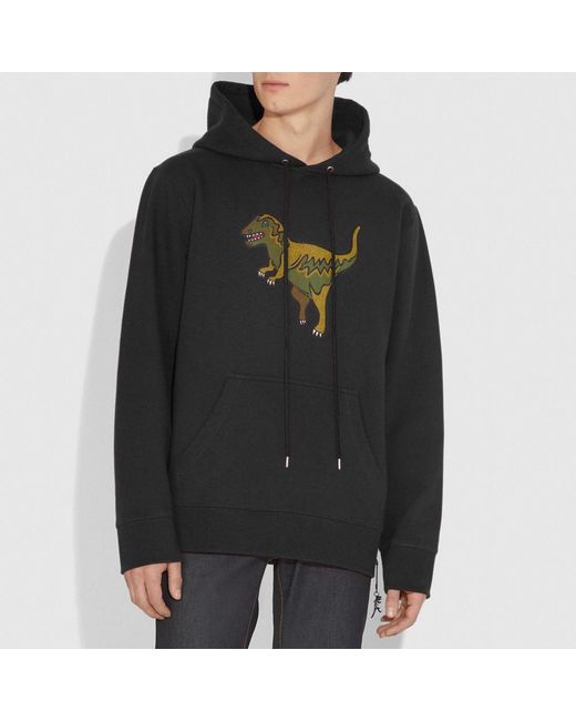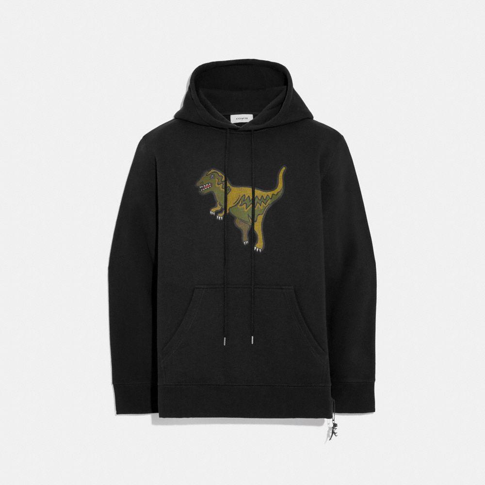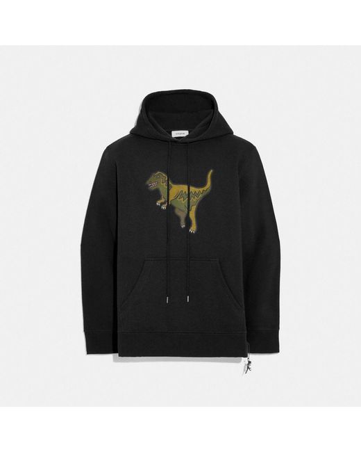 Rexy the Coach dino is front and center on this relaxed-fit hoodie. Designed with a kangaroo pocket, the sporty silhouette is crafted in a soft cotton-blend and finished with a Rexy charm. 60% cotton, 40% polyester Kangaroo pocket Length: 27 1/2" Model is 6'2" (188cm) and wears a size M. Color: black