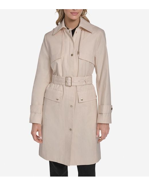 The Belted Trench Coat adapts as quickly as your day does. Zip off the hood when skies clear, cinch the belt for definition, leave it relaxed when you want ease. Water-resistant shell sheds drizzle without feeling rigid or clinical. Wind shields at the collar and hem stop gusts before they cut through. Snap closures secure you fast—no fumbling when the weather turns. Flap pockets keep essentials close. Fully lined so it feels right from first wear, whether you're headed to meetings or dinner after a long day. Measures 37". Cotton blend. Zip-off hood. Zip-front placket with snap closures. Zipper chest pocket feature. Front and back wind shields. Flap body pockets and sleeve tabs. Water-resistant shell and fully lined. Color: natural