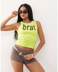 Go to ASOSTops by Collusion Exclusive to ASOS Crew neck Cap sleeves Text print on front Slim fit. Cotton. Color: green
