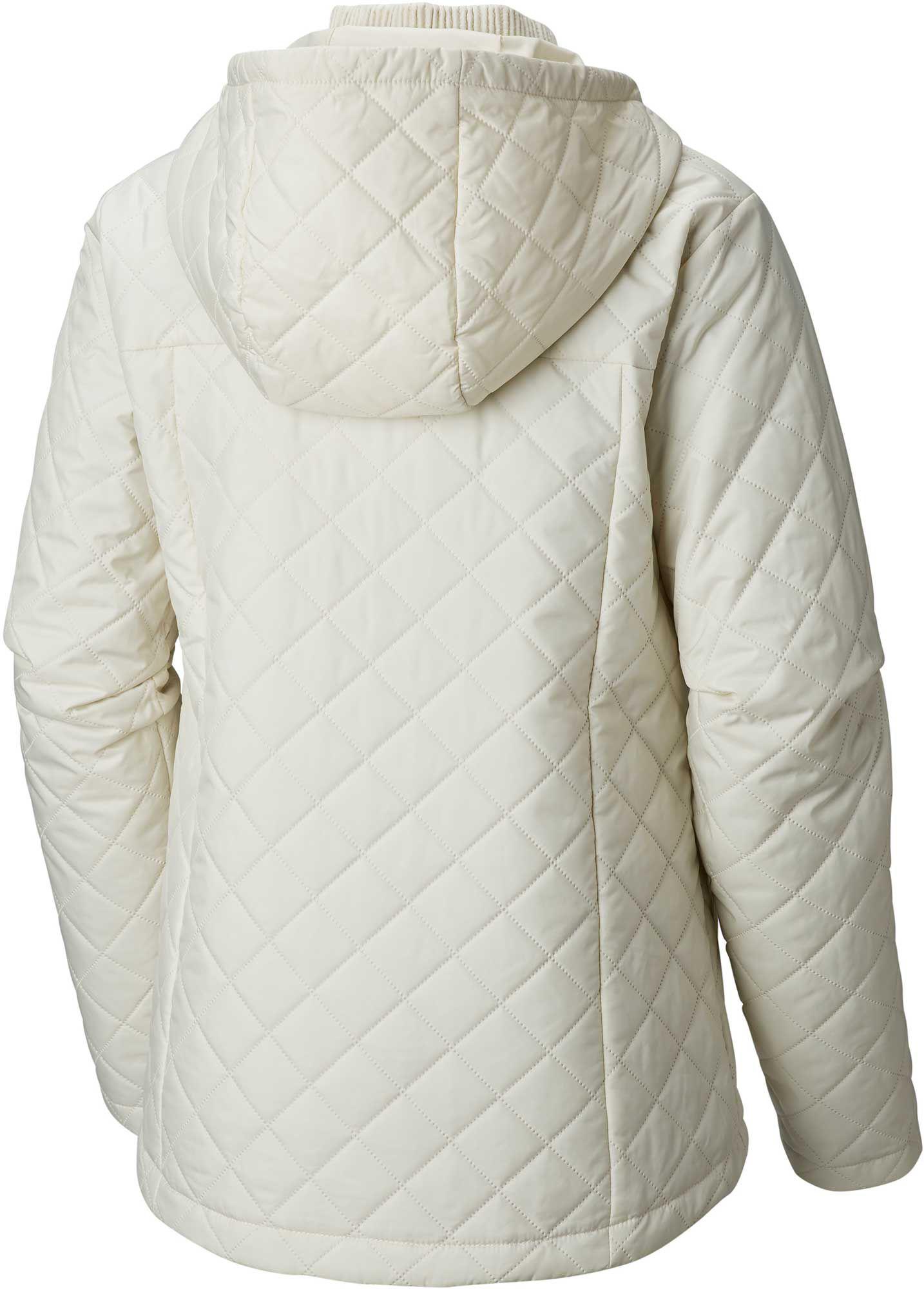 Omni-HEAT thermal reflective. Water resistant fabric. Ultrasonic bonding. Drawcord adjustable hood. Interior security pocket. Zippered hand pockets. Drawcord adjustable hem. Drop tail. Features: Reflective, Insulated, Drop Back Hem, Hood, Adjustable Drawcord Hem, Water-resistant, Internal Pockets. Back Length: 29 in. Hood Type: Fixed. Exterior Pockets: 2. Internal Pockets: 1. Jacket Fabric: 100% Polyester. Insulation Details: 100 g Microtemp XF II 100% Polyester. Fabric Weight: 3 oz / Square Yard. Product Technology: Columbia Omni-Heat Reflective. Best Use: Casual. Jacket Length: Hip. Fit Type: Regular Fit. Insulation: Synthetic.