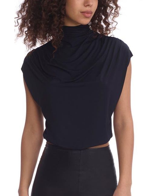 Women's Blue Butter Draped Funnel Neck Crop Top