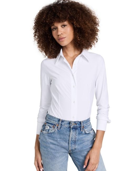 Women's White Classic Button Down Thong Bodysuit