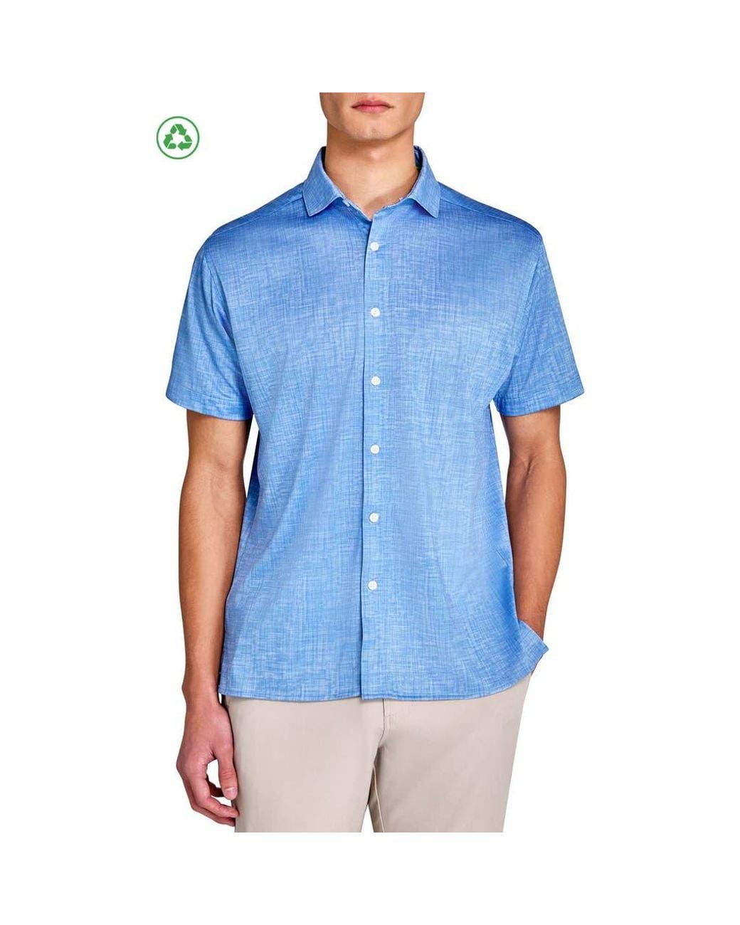 Men's Blue Regular Fit Chambray Recycled Performance Golf Button-Down Shirt