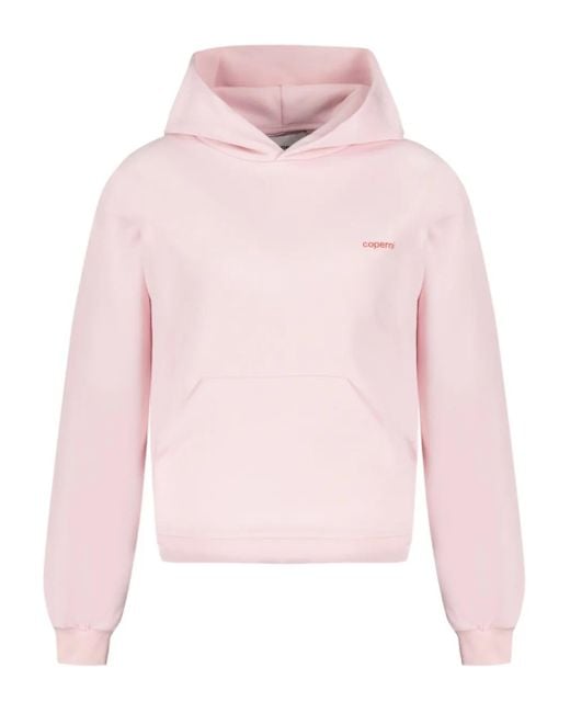 Pink hooded neckline kangaroo pocket long sleeves ribbed cuffs back logo print Size: XS. Gender: Female. Material:Cotton. Color: pink
