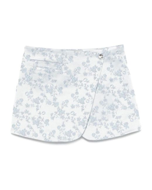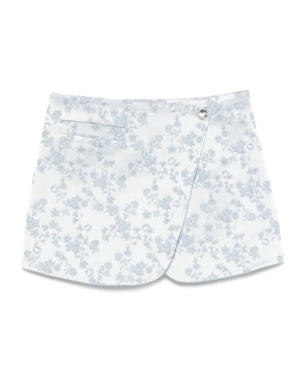 Floral-Applique Asymmetric Midi Skirt - Blue