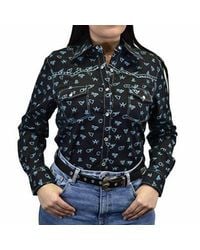Go to ShopSimonIntroducing the Youth Moody Cow Long Sleeve Print Shirt by Cowboy Hardware, designed to capture attention with its bold animal pattern. This unique shirt, featuring long sleeves and a classic western yoke, showcases
