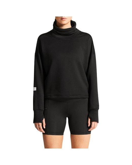 Practically made for movement, this jersey sweatshirt features tonal stripes, a slouchy turtleneck and thumbhole cuffs that warm your hands. Color: black