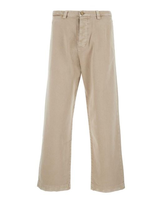 Men's Natural Beige Pants With Logo Patch In Denim Man