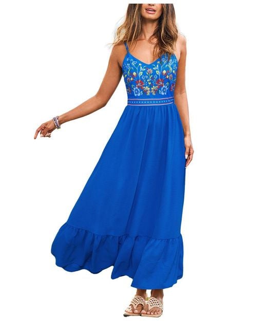 Women's Blue All Aboard Floral Maxi Beach Dress