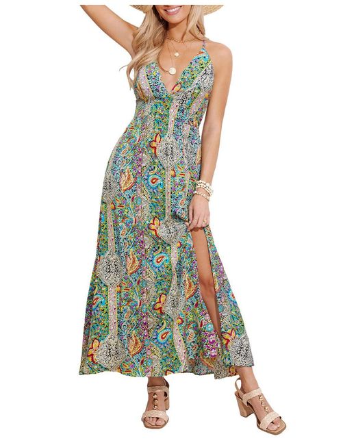 Women's Green Main Feed Paisley Maxi Beach Dress