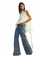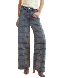 Cynthia Rowley Women's Blue Windowpane Wide-Leg Jeans