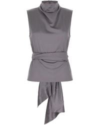 Go to FARFETCHLight beige front lace-up fastening classic collar long sleeves Size: 40. Gender: Female. Material:Elastane/Silk. Color: natural