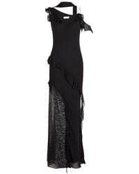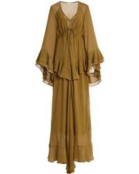 Go to Harvey NicholsInfo & Care De La Vali georgette dress Polka dot print, round neck, flared sleeves, puddle train, detachable slip lining; Concealed zip fastening at back; 100% viscose; lining: 100% polyester; Dry clean; Size
