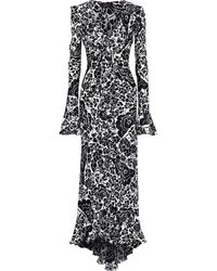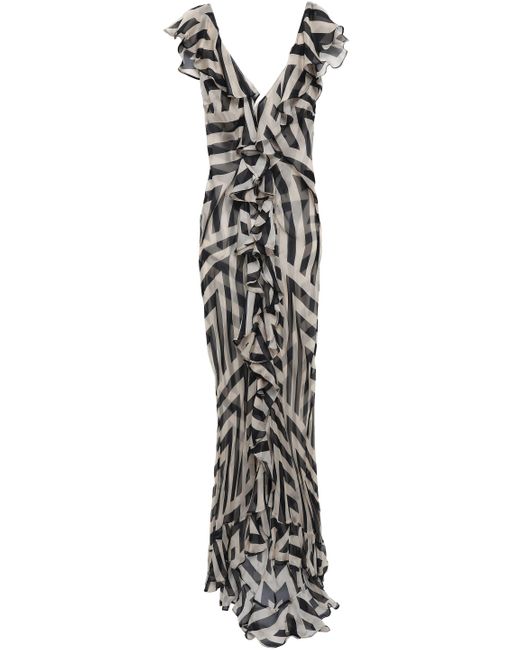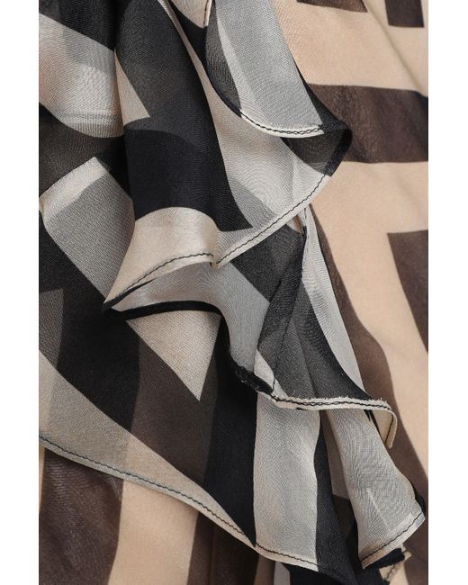 Women's Black Ruffle-trimmed Printed Silk-chiffon Gown Neutral