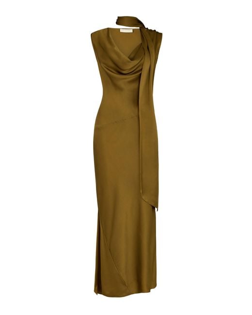 Women's Green Thebe Draped Silk-Blend Maxi Dress
