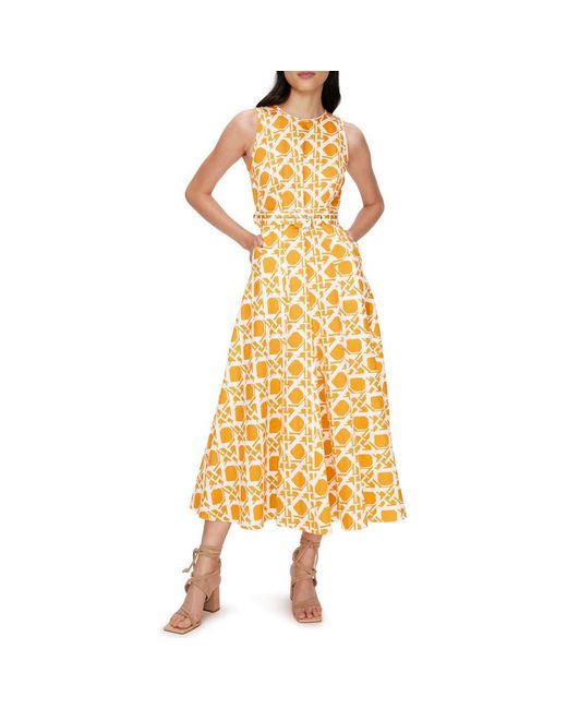 Women's Yellow Elliot Geometric Print Belted Midi Dress