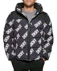 Go to Saks OFF 5THCovered in an allover logo print, this DKNY puffer jacket has an attached hood and is tailored in a classic fit. Attached hood. Long sleeves. Zip front. Two waist zip pockets. One inside