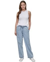 Go to Macy'sPerfectly slouchy with a relaxed silhouette, Dkny Jeans' high rise cotton jeans easily pull-on with an adjustable drawstring waistband. 100% cotton. Color: blue