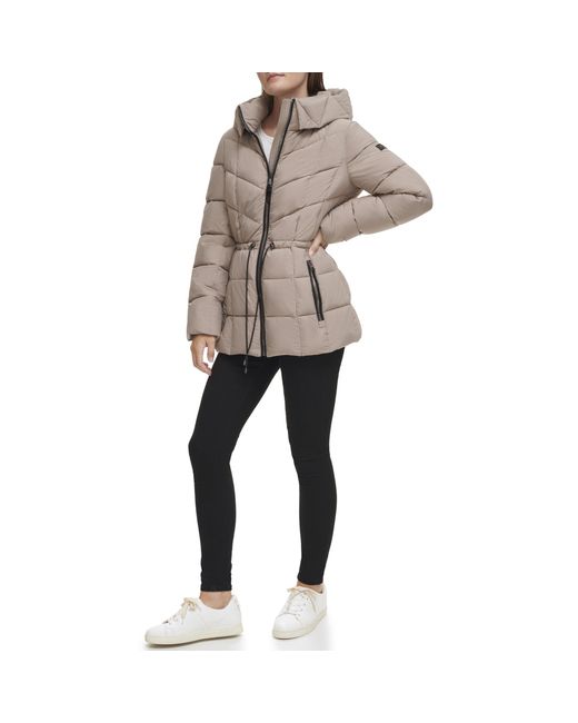 Features: outerwear, puffer, hooded, puffer, coat DKNY Women's Outerwear: Fashion you can count on for simple, comfortable style Versatile: Wear it all year; take this coat from fall into winter and layer up on chilly spring and summer nights Keeping warm: This coat provides an extra outer layer for added warmth and blocking out cold temperatures Year-round fashion: These coats can also be worn in the fall and colder months with jackets or sweaters.