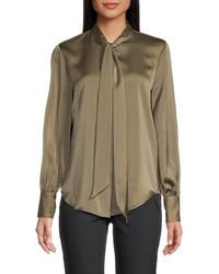 Go to Bloomingdale'sA versatile alternative to the basic blouse, this dkny tunic takes the top layer to new lengths with contrast trim. Viscose; trim: rubber. Dry clean. Imported. Point collar, button front placket, long sleeves,
