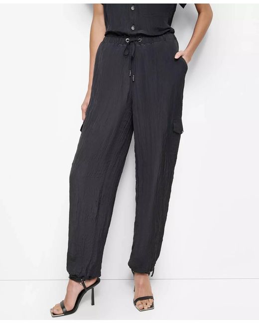 - Tie-Waist High-Rise Crinkled Jogger Cargo Pants