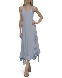 DKNY Women's Blue Tie Waist Ruffle Hem Dress