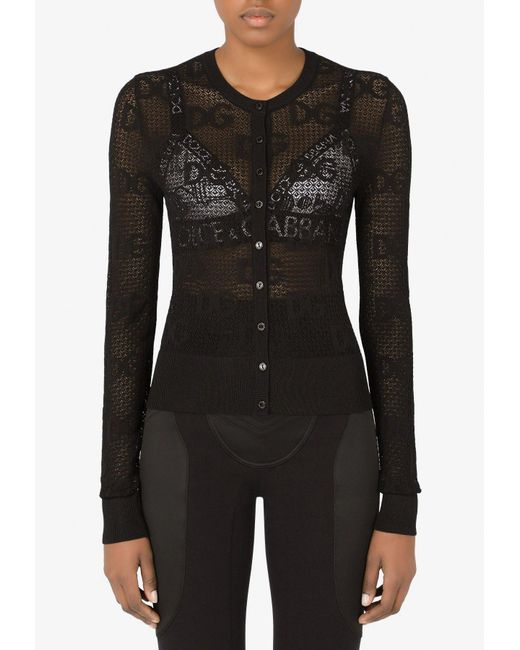 Women's Black Dg Logo Jacquard Lace Cardigan