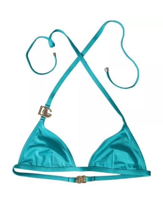 Women's Blue Halter Dg Logo Swimwear Beachwear Bikini Top