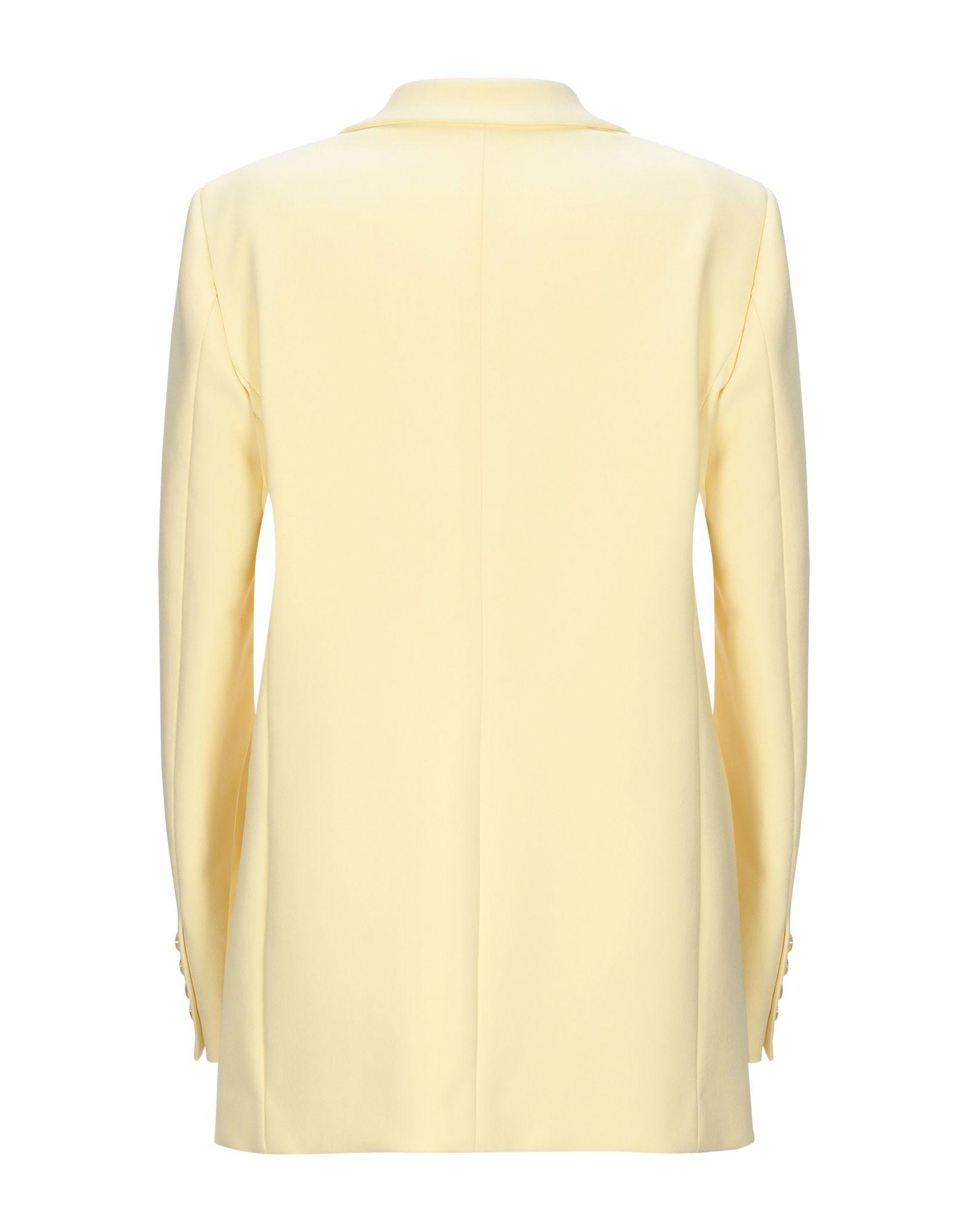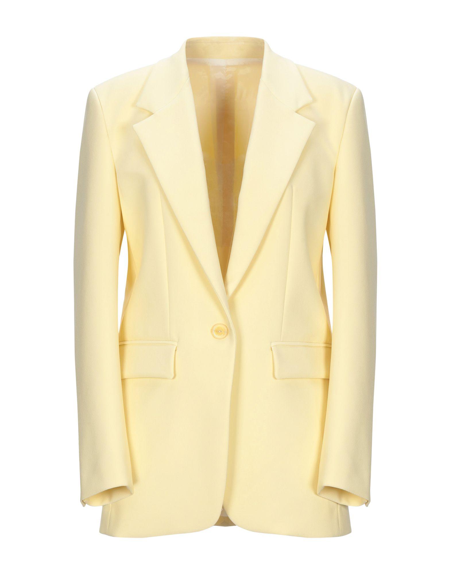 Crepe, no appliqués, solid color, multipockets, 1 button, lapel collar, single-breasted , long sleeves, fully lined, stretch. 95% Polyester, 5% Elastane. Color: yellow