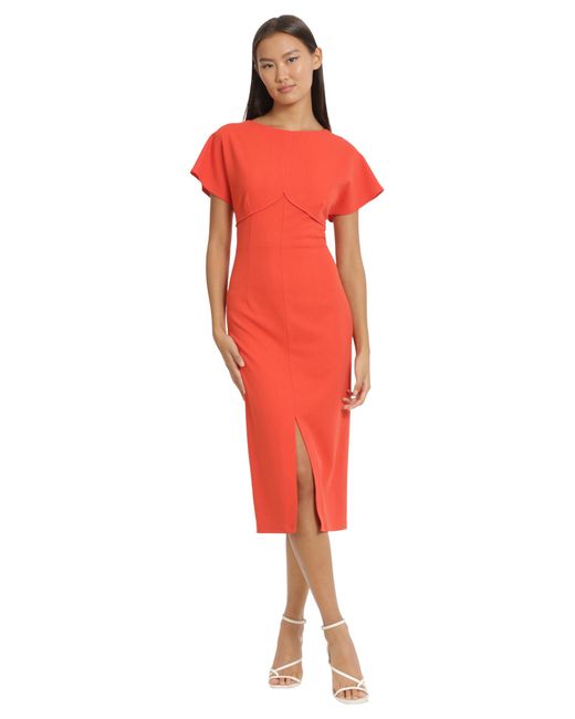 Women's Red Dresses Flutter Sleeve Crepe Sheath Midi Dress With Keyhole