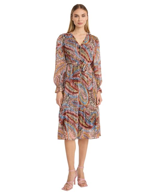 Women's Red Long Sleeve Midi Wrap Bridal Shower Or Wedding Guest Work Dresses For