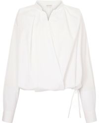 Dries Van Noten Women's White Chenver Shirt Wrap Design Long Sleeves
