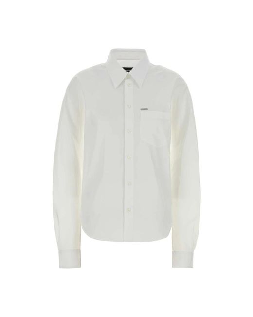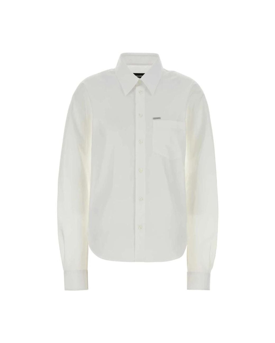Dsquared 2 Poplin Shirt is a clean, wardrobe-ready white shirt crafted in cotton poplin. It pairs a classic long-sleeve silhouette with tailored detailing for smart, versatile wear. Key attributes: White | Cotton poplin | Lightweight | Breathable fabric | Button closure | Buttoned cuffs | Chest pocket | Long sleeves | Rounded hem | Classic collar | Composition & care: 100% cotton | Machine wash cold; do not bleach; cool iron; do not tumble dry. Color: white