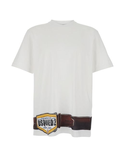 Men's White Crew Neck T-Shirt With Raised Collar And Print On The Front And Back
