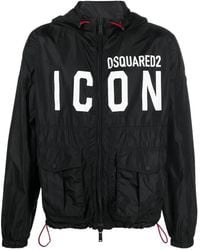 Go to MiintoDsquared2 black nylon jacket with frontal print logo, zip closure on the front, elasticized cuffs, hood, US SIZE. Gender: Men. Material: 100% POLYAMIDE. Color: Black. Made in: IMPORTED. Product ID: S79AM0054S53817900. *Import tax/duty